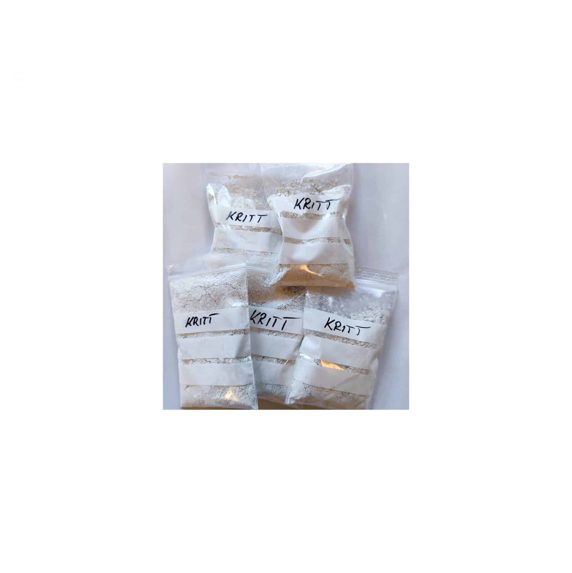 Krittpulver Slemmet kritt hvit er finkornet kalksten. Kritt (Kalciumkarbonat) i porsjonsposer er utmerket til å rengjøre vinduer som er kittet med linoljekitt. Å strø kritt på vindusglass er en effektiv måte å få bort rester av linoljekitt og fingermerker på. Når krittet børstes med en stiv naturbustpensel på glasset, tar det med seg fett og etterlater skinnende blanke glass.